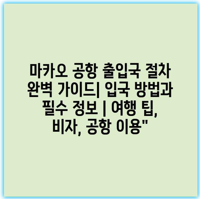 마카오 공항 출입국 절차 완벽 가이드| 입국 방법과 필수 정보 | 여행 팁, 비자, 공항 이용