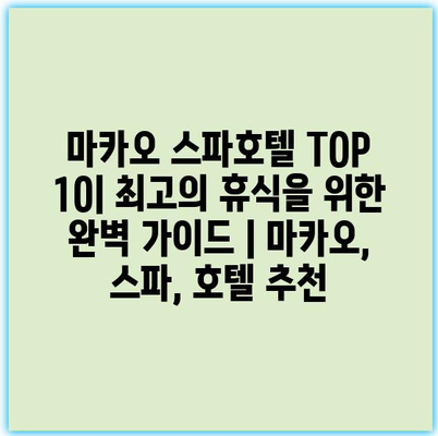 마카오 스파호텔 TOP 10| 최고의 휴식을 위한 완벽 가이드 | 마카오, 스파, 호텔 추천