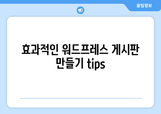 효과적인 워드프레스 게시판을 만들기 위해선 기본적인 디자인뿐만 아니라 사용자 경험을 고려해야 합니다. 사용자들이 쉽게 접근하고 원하는 정보를 빠르게 찾을 수 있게 구성하는 것이 중요합니다.