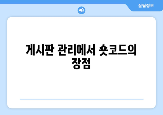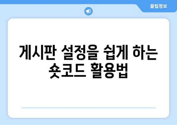 숏코드는 짧은 코드로 복잡한 기능을 쉽게 사용할 수 있게 해주는 유용한 도구입니다. 게시판을 생성할 때 이 숏코드를 활용하면 글을 쉽게 작성하고 관리할 수 있습니다.