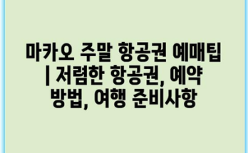 마카오 주말 항공권 예매팁 | 저렴한 항공권, 예약 방법, 여행 준비사항 주말에 마카오를 여행하고 싶다면 항공권 예매가 중요합니다. 어떤 방법으로 저렴한 항공권을 찾을 수 있을까요? 첫 번째는 비교사이트를 이용하는 것입니다. …